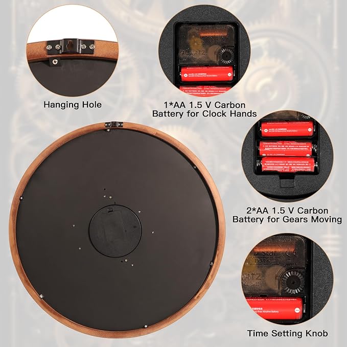 - Real Moving Gears: Industrial decor inspired, when you put the batteries in, various cog start rotating, definitely an eye-catching wall décor gears clock for your home, surely capture anyone's attention. The moving gears makes a relaxing noise and make the clock a living element in the environment in which it is placed