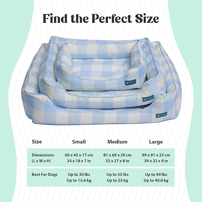 Orthopedic Bolster Dog Bed β CertiPUR-US Foam, Recycled Polyester Canvas, Washable Cover, Anti-Slip Bottom, Small, Navy Plaid β Stylish Designer Dog Sofa