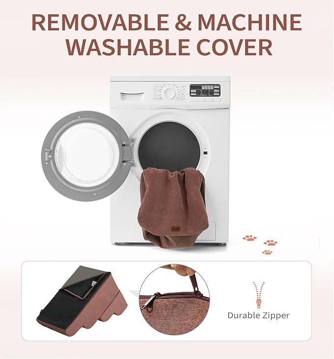 - Easy to Clean & Maintain: The removable fleece cover is machine washable for easy cleaning—just remove the foam core and toss the cover in the wash. Note: After unpacking, allow the foam to fully expand for 24-48 hours to ensure maximum comfort and stability. For long-lasting use, wipe the foam core clean. This simple care keeps your pet's stairs fresh and comfy for your furry friend!