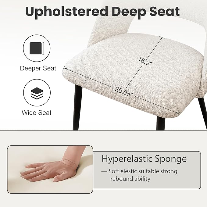 - Quality Materials & Fine Craftsmanship: Our dining chairs are covered in premium boucle fabric with gorgeous texture, which is soft and skin-friendly. Clean stitching highlights the quality and improves the durability