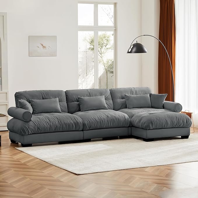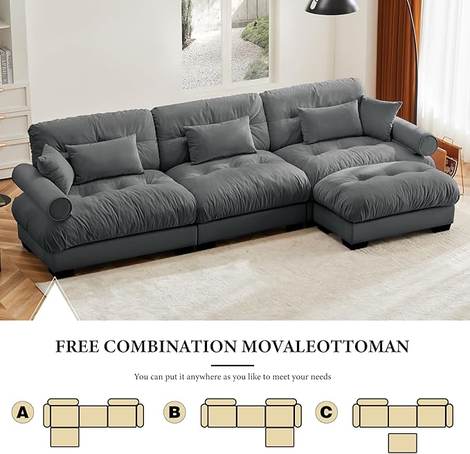 - 【High-Quality Materials】—Crafted from soft, durable velvet, this cloud couch sectional provides luxurious comfort and cozy seating all year round.