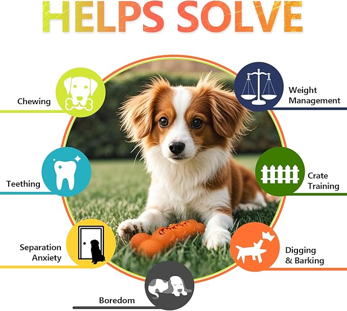 - Satisfy Instinct Needs: Treat Dispenser puzzle toys, stuff food or treats into the toy to create a stimulating snack puzzle for your dog, the toy helps solve problems such as chewing, teething, boredom, digging, barking, etc.
