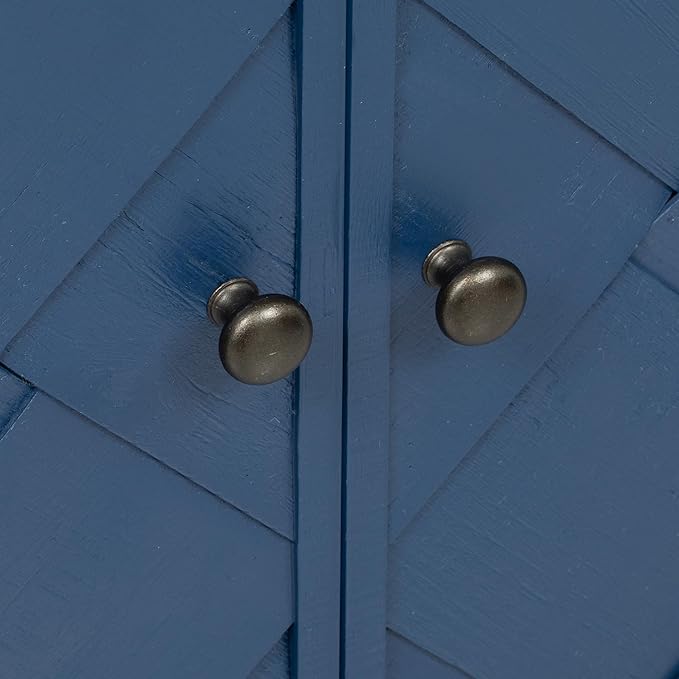 Unique Retro Curved Sideboard with 4 Handwoven Wood Slat Doors, Solid Wood Veneer Accent Entryway Console Table Storage Cabinet for Hallway Living Room Dining Room (Navy Blue-V)