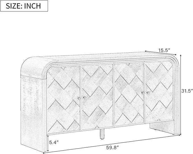 - ♬【Versatile Functional Storage】Designed for adaptability, the sideboard offers ample storage behind its four doors, ideal for organizing books, decor, or dining essentials. Its sleek profile adapts to living rooms, studies, or dining areas with ease.