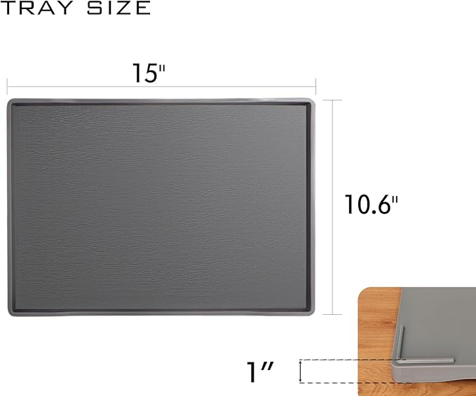 - Quantity, Dimensions and Material: One Gray tray, Rectangular shape, 15"L x 10.6"W x 1"H, 1.23Ib, Plastic. For safety reasons, you should keep it away from microwave ovens, etc.