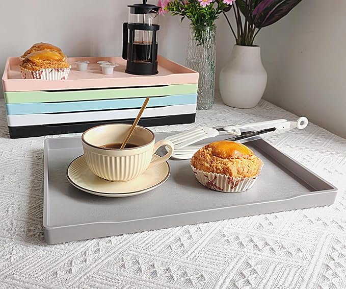 Gray Serving Tray (15 x 10.6 inch), Large Tray, Serving Accessory, Spa, Coffee, Drinks, Tea, Bar, Party, Seasoning, Perfume and Display Use.