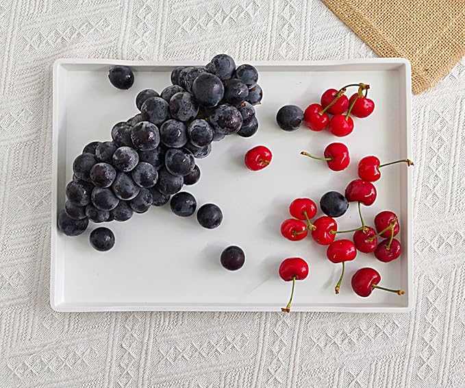 White Serving Tray (13.5 x 9.6 inch) for Serving Accessory, Elegant & Stackable Plastic Tray for Spa, Coffee, Drinks, Tea, Bar, Party, Seasoning, Perfume and Display Use.