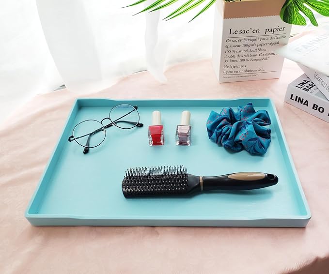 Blue Serving Tray (15 x 10.6 inch), Laegr Tray for Serving Accessory, Spa, Coffee, Drinks, Tea, Bar, Party, Seasoning, Perfume and Display Use.