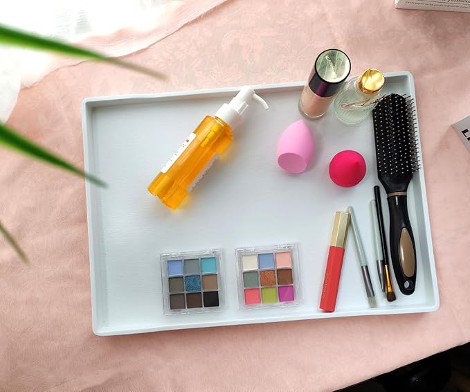 White Serving Tray (15 x 10.6 inch), Large Serving Accessory, Fruit, Spa, Coffee, Drinks, Tea, Bar, Party, Seasoning, Perfume, Decorative and Display Use.