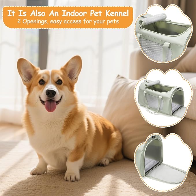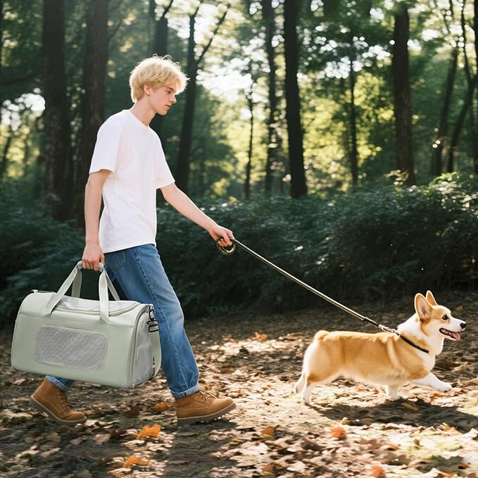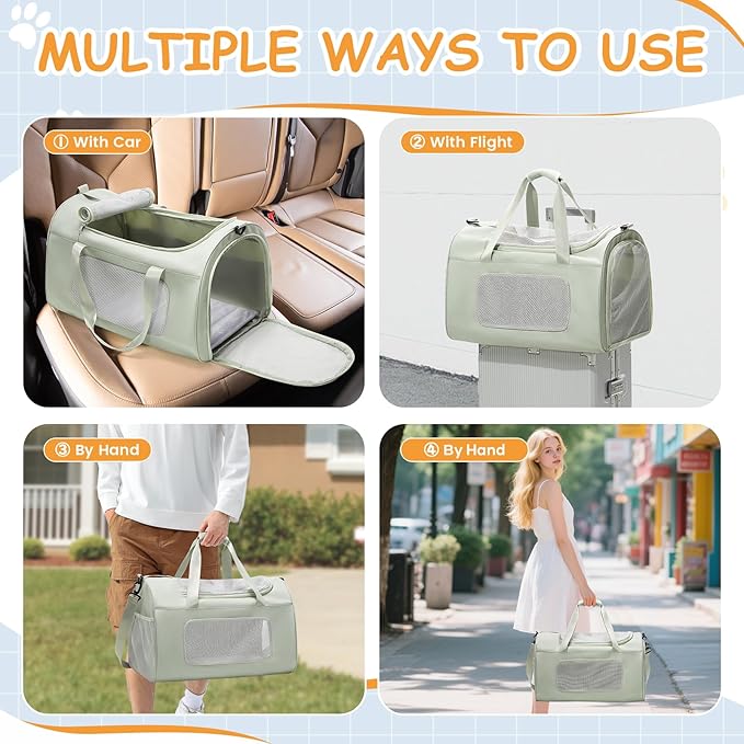 Extra-Large Cat Carrier Soft Sided Flight Approved, Mesh Pet Carrier for Travel Outdoors with Shoulder Straps, Cat Carriers for Cats/Puppy/Dogs Up to 30Lbs, Green