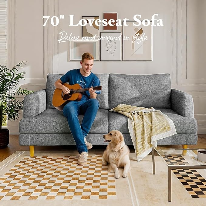 - Spacious Comfort for Everyday Living: Measuring a generous 70 inches in length, this love seat is ideal for two to three people, making it perfect for cozy movie nights, casual hangouts, or even solo relaxation. Designed with deep seats and plush cushions filled with high-resilience spring foam, this sofa delivers an exceptional level of comfort that supports you for hours—whether you're lounging, reading, or working from home.