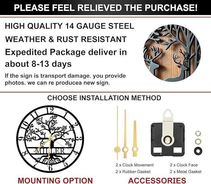 - 14 Gauge Steel Construction: Crafted from high-quality 14 gauge steel, custom metal tree of life wall clock ensures durability and longevity, making tree of life clock a perfect addition to any home.