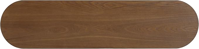 Modern Curved Console Table for Entryway, Farmhouse Solid Wood Fluted Sofa Table with Open Shelf & Elegant Wood Grain, Oval Long Foyer Table for Entry Way Hallway Living Room-58.9" Brown