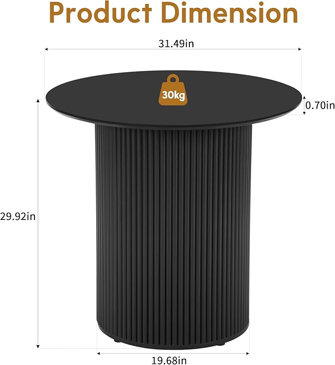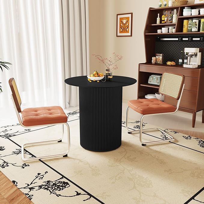AVZEAR 31.5" Round Dining Table for 2 People, Small Kitchen Dinner Table with Fluted Wood Base, Farmhouse Circle Dining Tables for Home, Kitchen, Dining Room, Living Room (Black)
