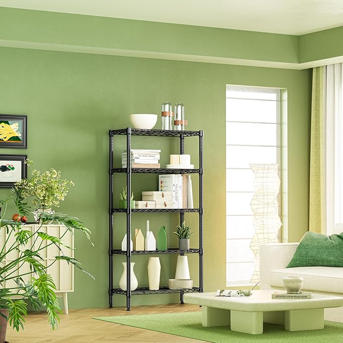 IZEUK 5 Tier Black Metal Storage Shelves, Heavy Duty Wire Shelving Rack for Garage, Kitchen, Bathroom, Laundry, Closet Organizer, 1250 lbs Capacity, 11.8" D x 29.5" W x 59.5" H