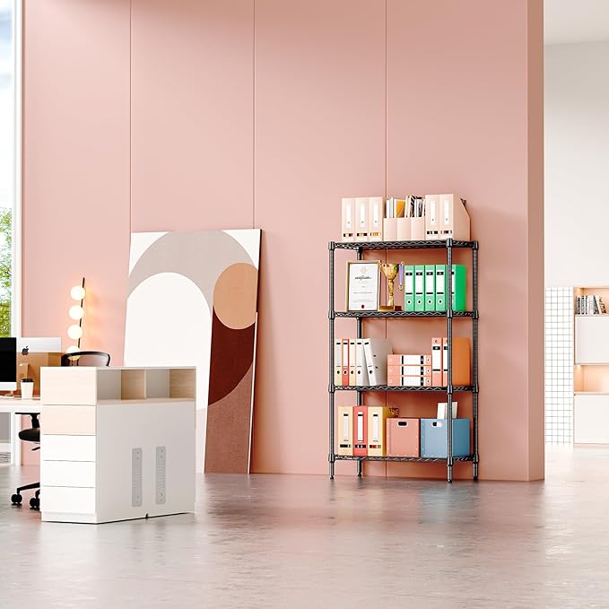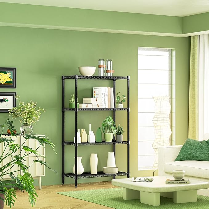 IZEUK 4-Tier Black Metal Storage Shelves, Heavy Duty Adjustable Wire Shelving Rack for Garage, Kitchen, Bathroom, Closet Organizer, 1000 lbs Capacity, 15.7" D x 33.5" W x 59.5" H