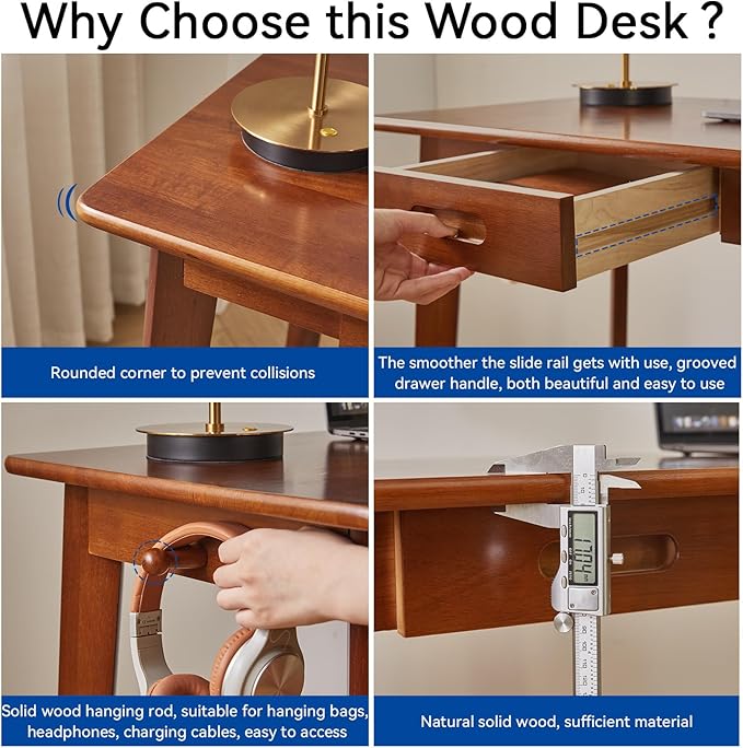- Solid Wood Material: This wood desk's tabletop and legs are made of high-quality natural rubberwood that is sturdy and durable, and can be used for years. The drawers are made of paulownia wood that is lightweight and practical. Used water-based paint, which is non-toxic and harmless