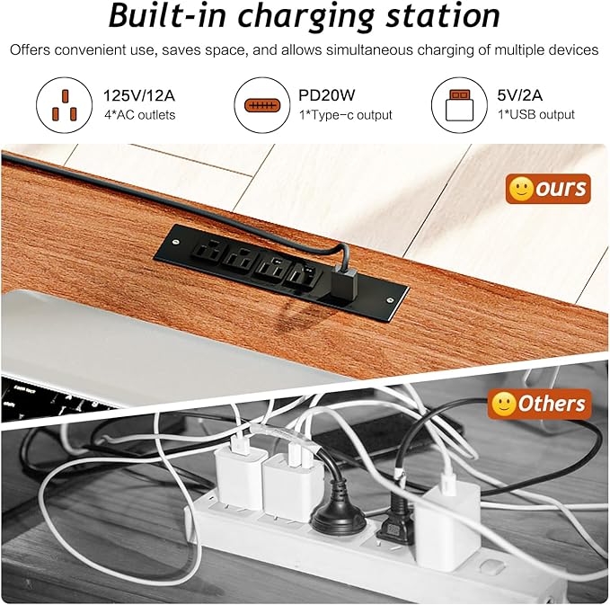 - 【Built-in Power Strip】Upgrade design!This Computer Desk equipped with a power strip that has 4 standard plug sockets ,1 USB ports and 1 T-C with a 4.9-foot power cord,convenient for the Computers and printers, and charge your phone, tablet, or other electronics.