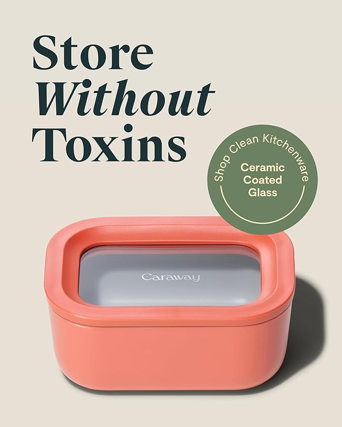 Caraway 6pc Glass Food Storage Set - 2.6 Cup Storage Containers For Food (6) - Non-Toxic Ceramic-Coated Glass - Air Release Technology - Compact & Stackable Design - Perracotta