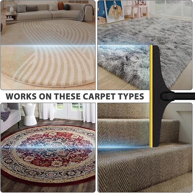 - Stand to Rake, Say Goodbye to Kneeling: Tired of kneeling to clean pet hair from carpets with sticky rollers or short-handled tools? Try our long-handled carpet rake! It's an efficient, cost-effective alternative to expensive pet vacuums.