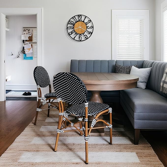 - 【Easy to Read】Round black metal number, wood wall clock is easy to read bold numbers on the surface with white hands. Make this metal clock the focal point of any room! Also, perfect for decorating any home decoration style.