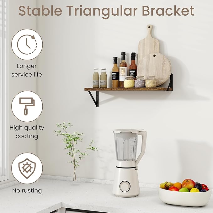 - Wide Application: These floating shelves are perfect for any room in your home. Use them in the living room to display artwork, in the kitchen for spices and utensils, in the bathroom for toiletries, or in the bedroom for books and accessories. Their versatility ensures they meet your storage and decor needs wherever you place them.
