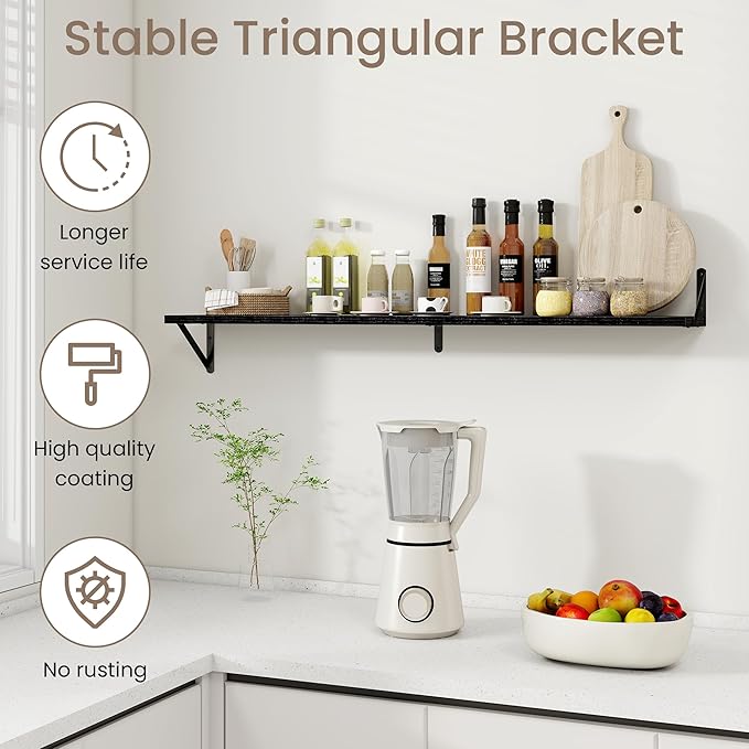 - Wide Application: These floating shelves are perfect for any room in your home. Use them in the living room to display artwork, in the kitchen for spices and utensils, in the bathroom for toiletries, or in the bedroom for books and accessories. Their versatility ensures they meet your storage and decor needs wherever you place them.