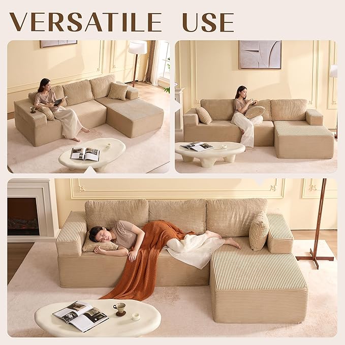 107" Boneless Couch with Deep Seat, Modular Sectional Sofa, Cloud Sectional Couch for Living Room, No Assembly Required, Corduroy, L-Shape Right?Camel