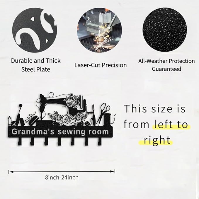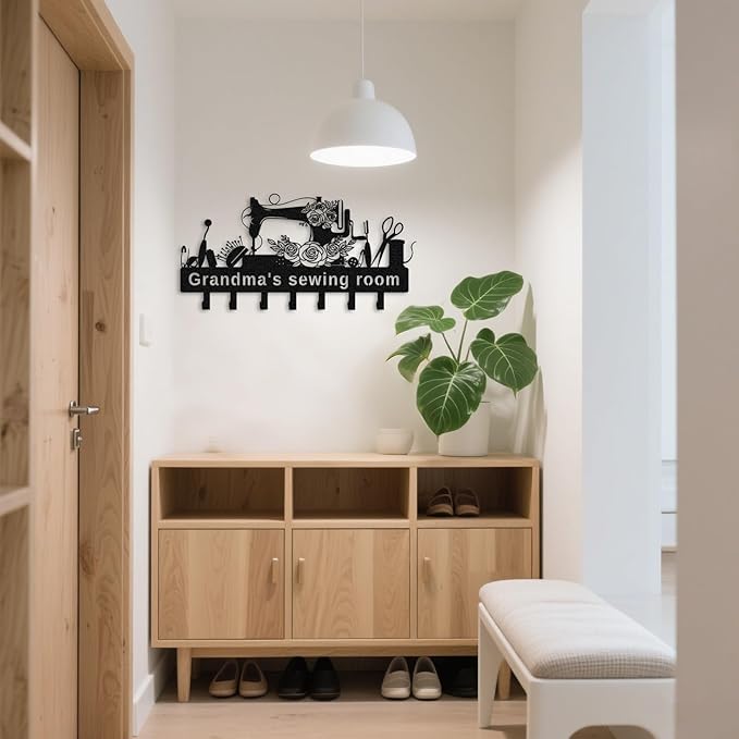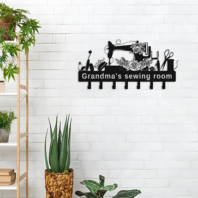 Personalized Sewing Room Signs Metal Key Holder Custom Sewing Key Hooks Craft Room Decor Quilting Gift for Mom Grandma