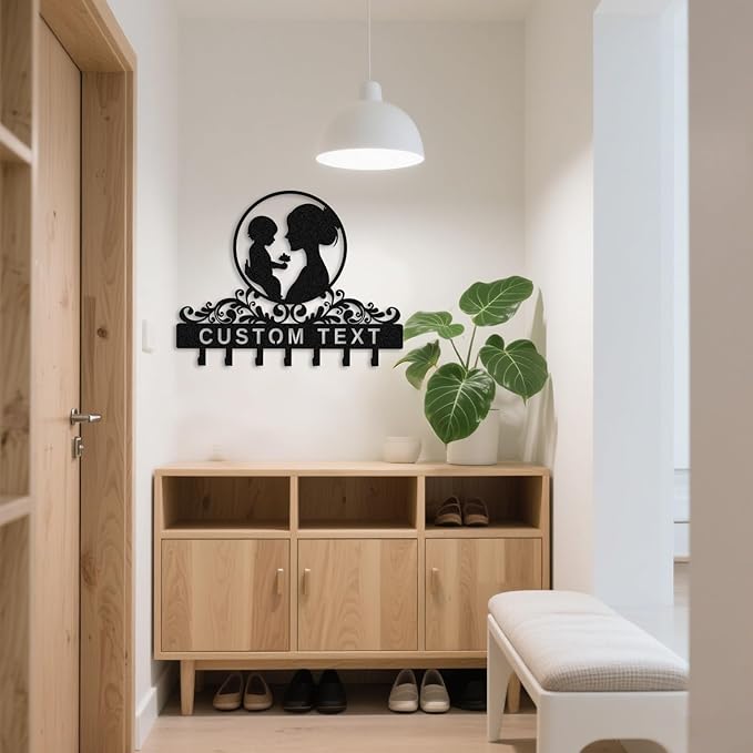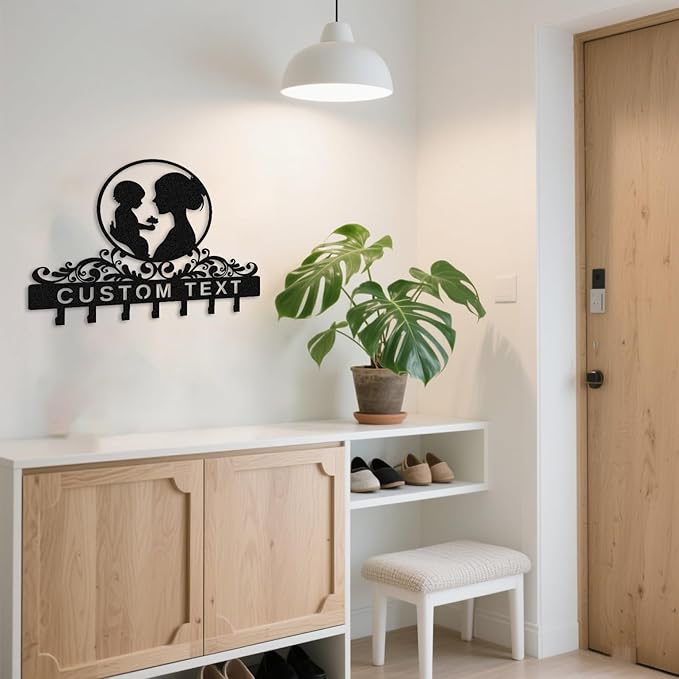 Personalized Key Holder Wall Mount,Custom Name Key Holder Wall Art,Mom and Kid Wall Decor,Gift for Mom Grandma,Mother's Day Gift