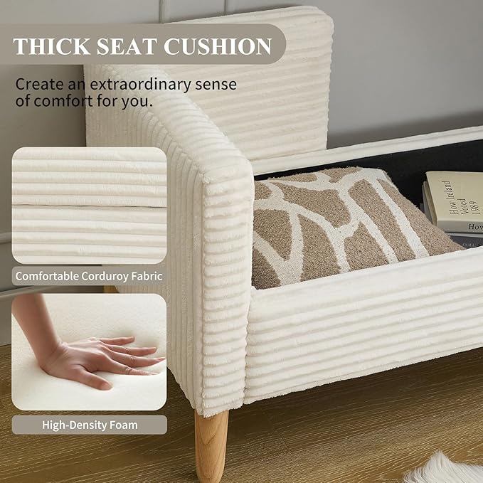 - Sink into Premium Comfort - The soft texture of corduroy is as light as a cloud. When you sit on it, the fabric can gently fit the skin, bring unparalleled comfort and effectively relieve fatigue. Filled with high-density foam, the thick cushion is soft, making the whole bed bench more durable and comfortable. When you sit on the upholstered bench, you will get an effortlessly comfortable sitting experience.