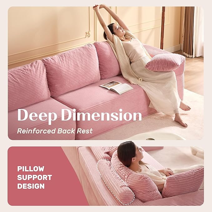 138" Modular Sofa Memory Foam Sectional Couches for Living Room, Sleeper Sofa Bed, Corduroy, Pink