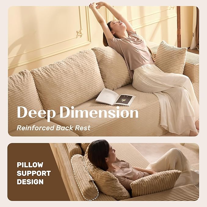 - Generous Dimensions with Deep Seating:Measuring 137 inches wide and featuring an extra deep 20.5 inch seat, this sofa offers ample room for ultimate relaxation. Whether you're curling up for a movie marathon or stretching out for a nap, the deep seat provides a spacious and indulgent seating experience like no other