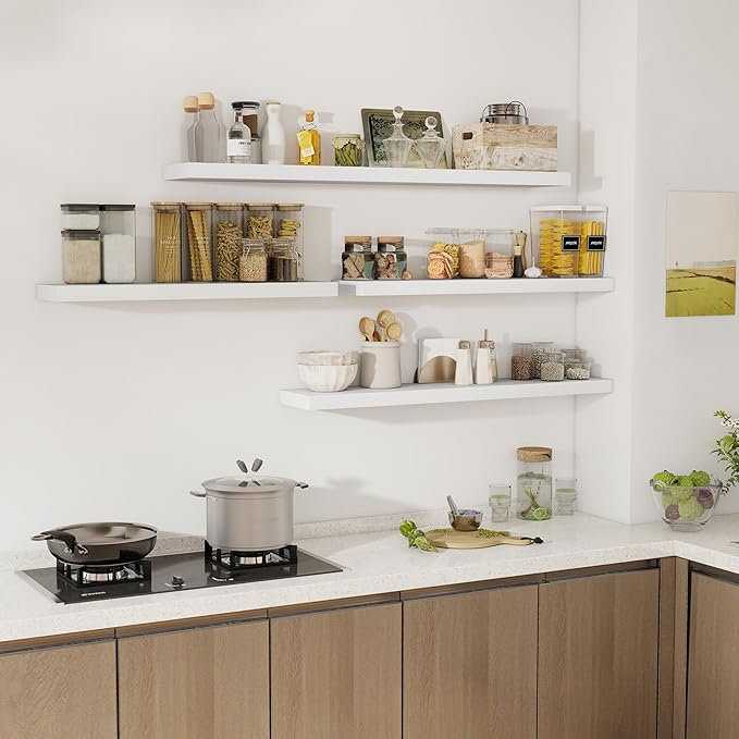 - Optimize Your Home Space: Maximize your vertical space with these floating shelves. Perfect for displaying books, photo frames, plants, or small decor items, these shelves provide extra storage while freeing up valuable floor space. Whether in the living room, kitchen, bathroom, or office, they help keep your home neat and organized without sacrificing style.