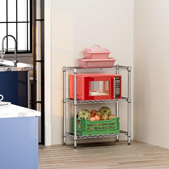 IZEUK 3 Tier Heavy Duty Steel Storage Shelves, Metal Shelf Wire Shelving Rack for Pantry, Kitchen, Cloakroom or Office Organization (13.8" D x 23.6" W x 35.5" H, 750LBS, Chrome)