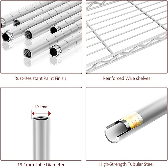 IZEUK 4 Tier Steel Storage Shelves, Adjustable Wire Shelving Unit for Kitchen, Bathroom, or Office Organization, Heavy Duty Metal Rack, 480 lbs Capacity, 11.8" D x 11.8" W x 47.3" H, White
