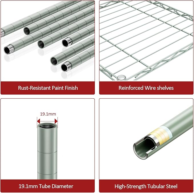 - 【Rust & Dirt Resistant】This IZEUK 3 tier shelf features a powder-coated finish that resists rust and dirt, ensuring long-term durability. Perfect as a wire shelving rack, display shelf, or skinny shelf for kitchen, pantry, laundry room organization, or garage storage.
