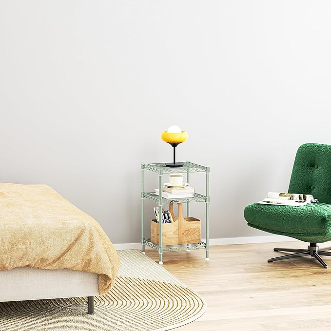IZEUK 3 Tier Heavy Duty Steel Storage Shelves, Metal Shelf Wire Shelving Rack for Pantry, Kitchen, Cloakroom or Office Organization (13.8" D x 13.8" W x 25.5" H, 750LBS, Green)