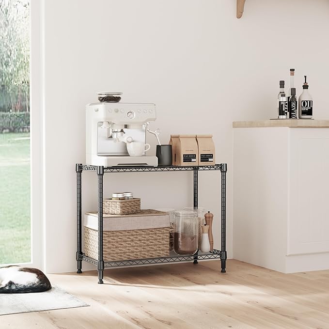 IZEUK 2 Tier Adjustable Metal Storage Shelving Unit, Heavy Duty Wire Rack Organizer for Kitchen, Living Room or Office, 220 lbs Capacity, 27.6 W x 11.8 D x 23.4 H, Black