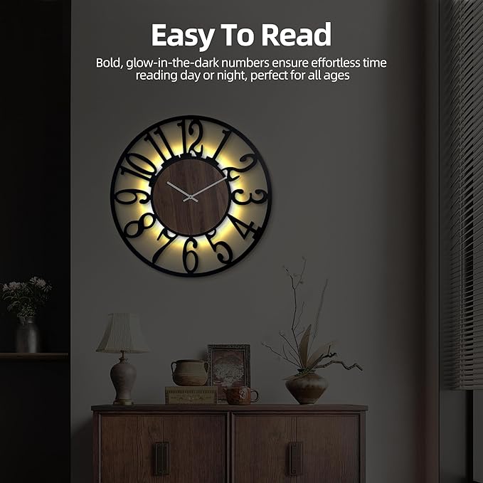 - Modern Rustic Metal Design - Designed with a premium metal frame, this clock blends seamlessly with modern, farmhouse, or rustic decor. Clean lines meet timeless charm — whether you're going for classic or contemporary home decor