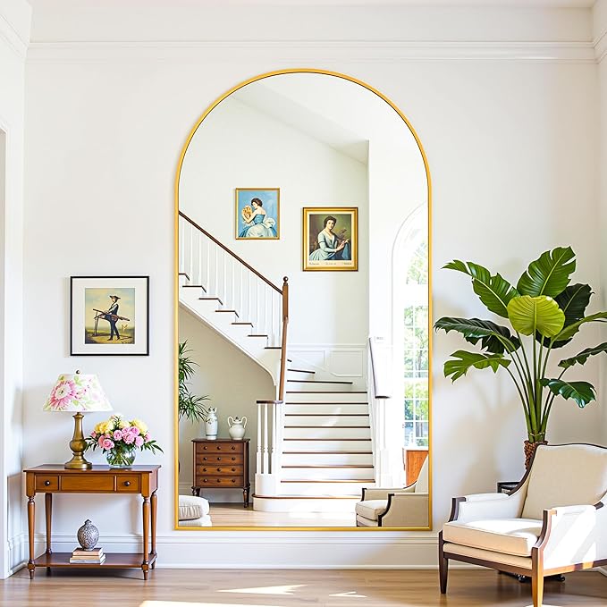 Full Length Mirror, 81"x41" Oversized Floor Mirror Freestanding, Full Body Mirror Floor Standing Mirrors with Stand, Hanging Mounted Mirrors for Bedroom Living Room, Gold, Arched Style