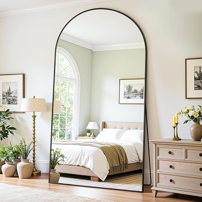 - Premium Material and Unique Design: This stand up mirror full length features a sturdy and durable aluminum alloy thin frame, Its sleek curved shape design makes it ideal for any modern or traditional decorative style, effortlessly enhancing the ambiance of any room