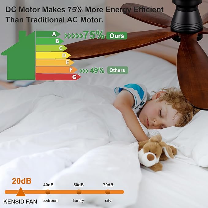 - Super Quiet Experience: Enjoy the wind, but keep the noise out! This bedroom ceiling fan is designed for light sleepers, brings you comfortable sleeping with a quiet living environment. The volume is low to 35dB when the fan is running, like the sound of falling leaves.
