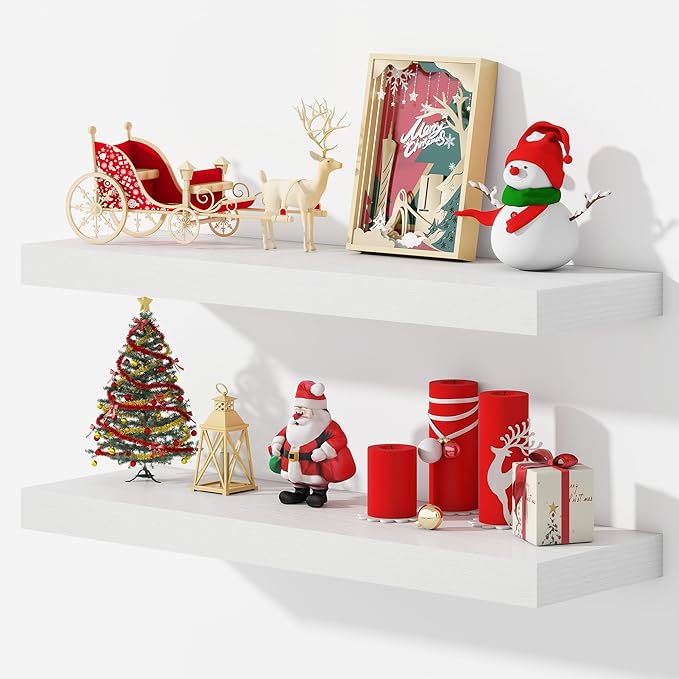 - Sturdy & Secure design: These 32-inch floating shelves feature a durable, concealed mounting bracket that offers reliable support for your belongings. Engineered for hassle-free and stable installation, each shelf includes all the required hardware to ensure a strong, wobble-free hold—perfect for showcasing your favorite decor, photos, or everyday items with confidence and style.