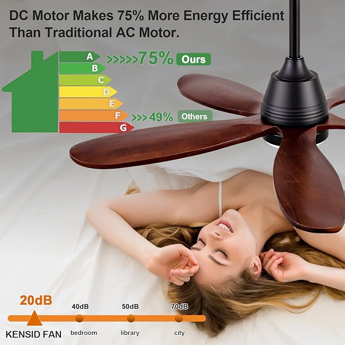 - Quiet Reversible Motor: This premium DC motor ensures a year-round comfortable experience, operating silently with noise levels under 30dB. It features both forward and reverse modes. During summer, it delivers powerful cooling breezes to reduce heat, while in winter, it enhances air circulation to alleviate the cold.