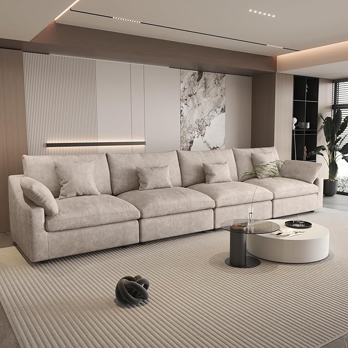 WJShome 160" Cloud Couch Sectional for Living Room, Down Filled Modular Sectional Sofa,4 Seater Convertible Couch, Sofa Covers Washable&Replaceable,Khkai