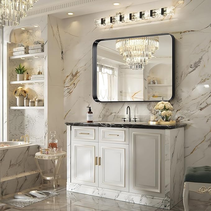 - Extra-Wide Clarity & Zero Distortion: Engineered with HD float glass for panoramic clarity, this bathroom mirror delivers crystal-clear reflections edge-to-edge. The precision-polished surface eliminates distortion, ensuring flawless grooming for dual vanities.