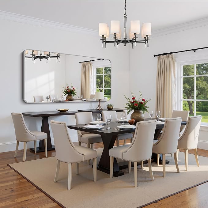 - Elegant Rounded Corners & Premium Safety: Featuring a sleek silver metal frame with softly contoured rounded corners. This sophisticated design combines modern elegance with enhanced safety, eliminating sharp edges while adding a luxe minimalist finish. The rich black frame elevates any decor, creating a visually expansive effect that brightens spaces and amplifies the sense of openness.