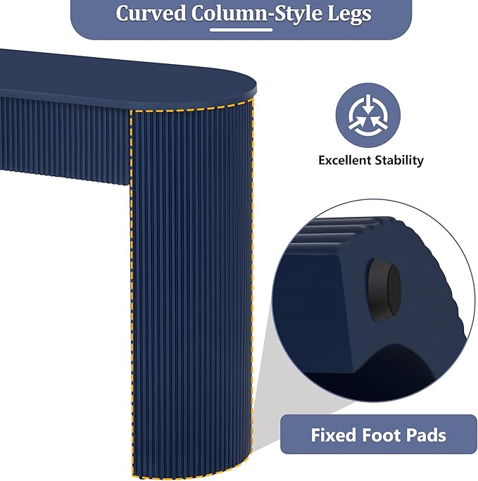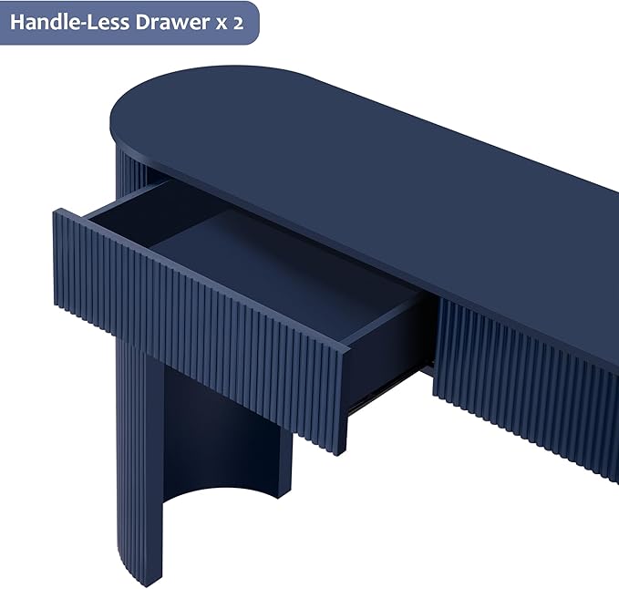 Modern Fluted Console Table 54-Inch Oval Entry Sofa Table with Storage Drawers for Living Room Entryway Hallway Furniture, Navy