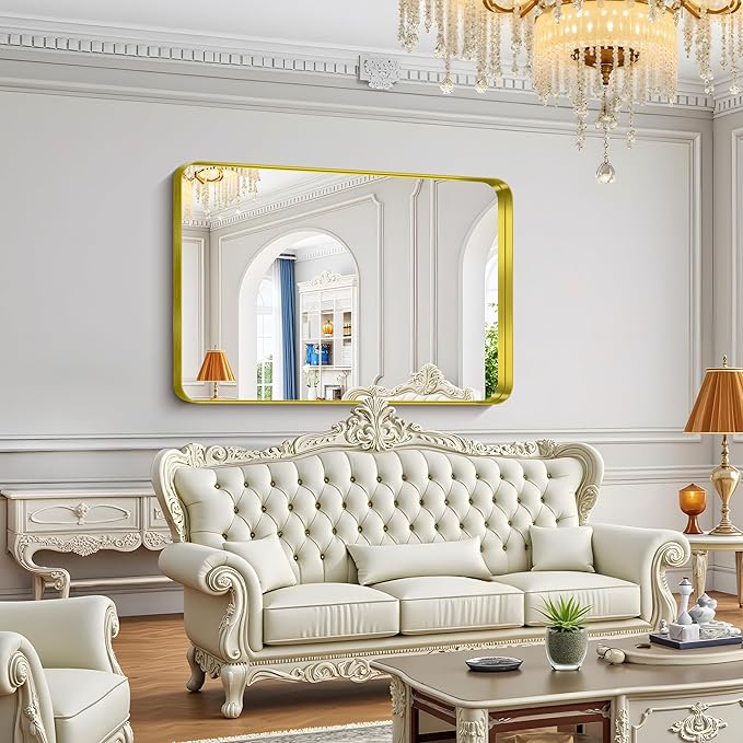 - Double-Vanity Solution: Creates symmetrical focal point above dual sinks - brushed gold deep frame visually expands space while complementing modern farmhouse/industrial decors.